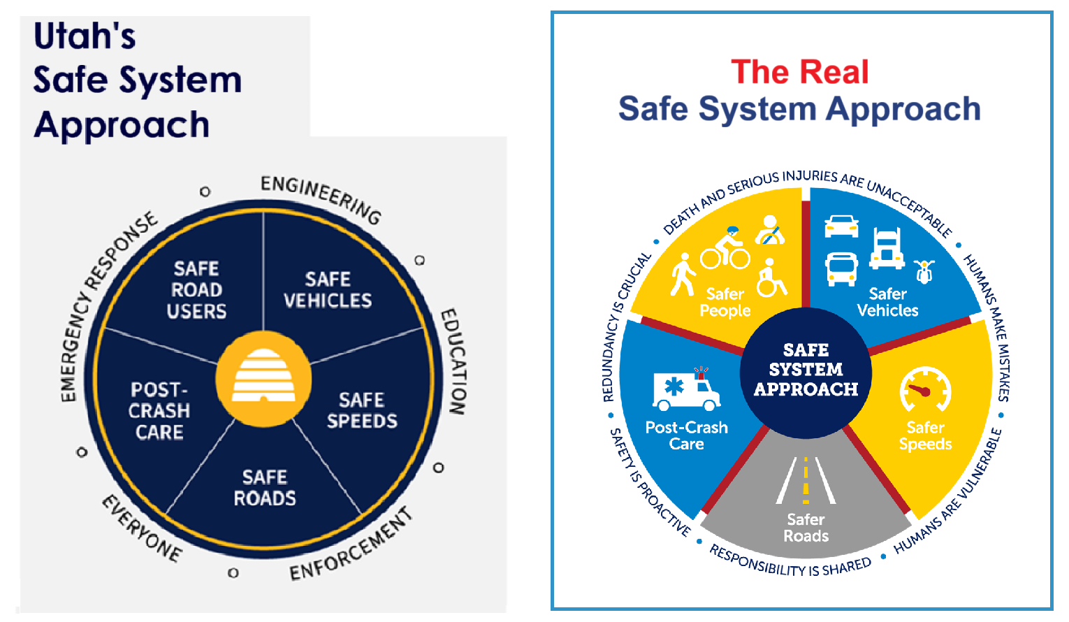 In 2022, the US Department of Transportation adopted the Safe System Approach the guiding paradigm to address roadway safety as part of its National Roadway Safety Strategy. This is an approach that was first enacted in Sweden under the name Vision Zero. Utah's latest Strategic Highway Safety Plan (SHSP 6.0) intends to adopt this new Approach. Except that there is an important difference.